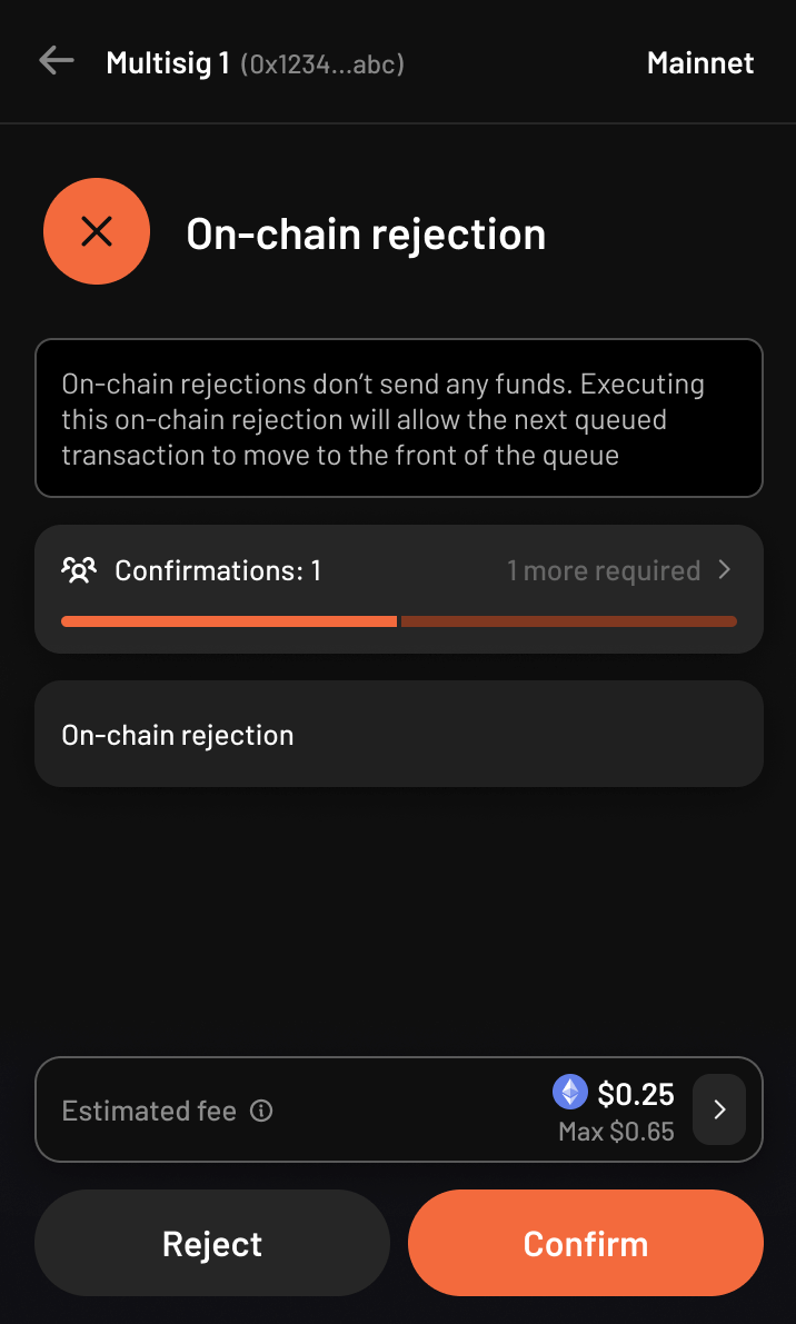 Since Ready Wallet Multisig supports offchain confirmations (signatures stored on our backend), an onchain rejection burns the nonce.